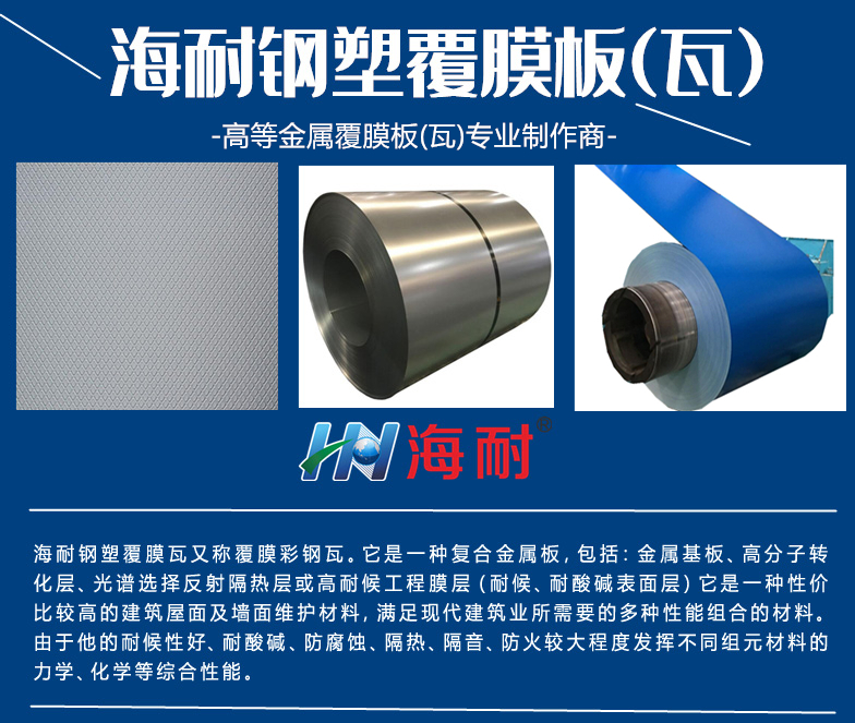 海耐覆膜彩鋼適用于工業(yè)廠房,民用建筑,糧食倉庫,鋼結(jié)構(gòu)廠房的建筑屋面、墻面材料。主要用于大型五金、化工廠、陶瓷廠、大型倉庫、批發(fā)市場、農(nóng)貿(mào)市場、畜牧養(yǎng)殖業(yè)、鑄造廠、電鍍廠、化肥廠、造紙廠等工業(yè)廠房鋼結(jié)構(gòu)廠房。(咨詢:0510-83326008)可以任意壓型、折彎、沖壓造型,可為建筑設(shè)計(jì)師提供無限創(chuàng)意空間,建造美麗獨(dú)特的建筑外衣、內(nèi)飾、創(chuàng)造完滿的視覺效果。所有部件均采用鋼性連接,可抗強(qiáng)臺(tái)風(fēng)襲擊。重量輕便:對(duì)鋼構(gòu)的承重要求降低,施工難度小。易安裝:安裝方便,縮短施工周期,節(jié)約工程造價(jià)。隔熱效果高:高熱反射率使產(chǎn)品表面不吸熱,即使在夏天板面也不燙手,使建筑物內(nèi)溫度降6-8度。防腐性強(qiáng):為高污染企業(yè)節(jié)約大量的人力、物力成本。自潔性高:具有抗靜電功能,表面光潔無須經(jīng)常清洗。壽命久遠(yuǎn):表面質(zhì)量可靠,內(nèi)在質(zhì)量始終如一。